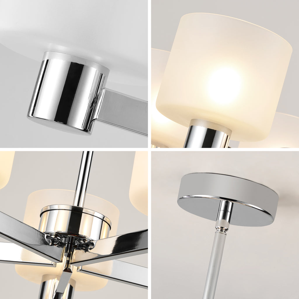 Modern 5 Lights Chandelier Ceiling Light, Chrome Semi Flush Ceiling Lamp with Sanded Glass Shades, 5xG9 Ceiling Lighting