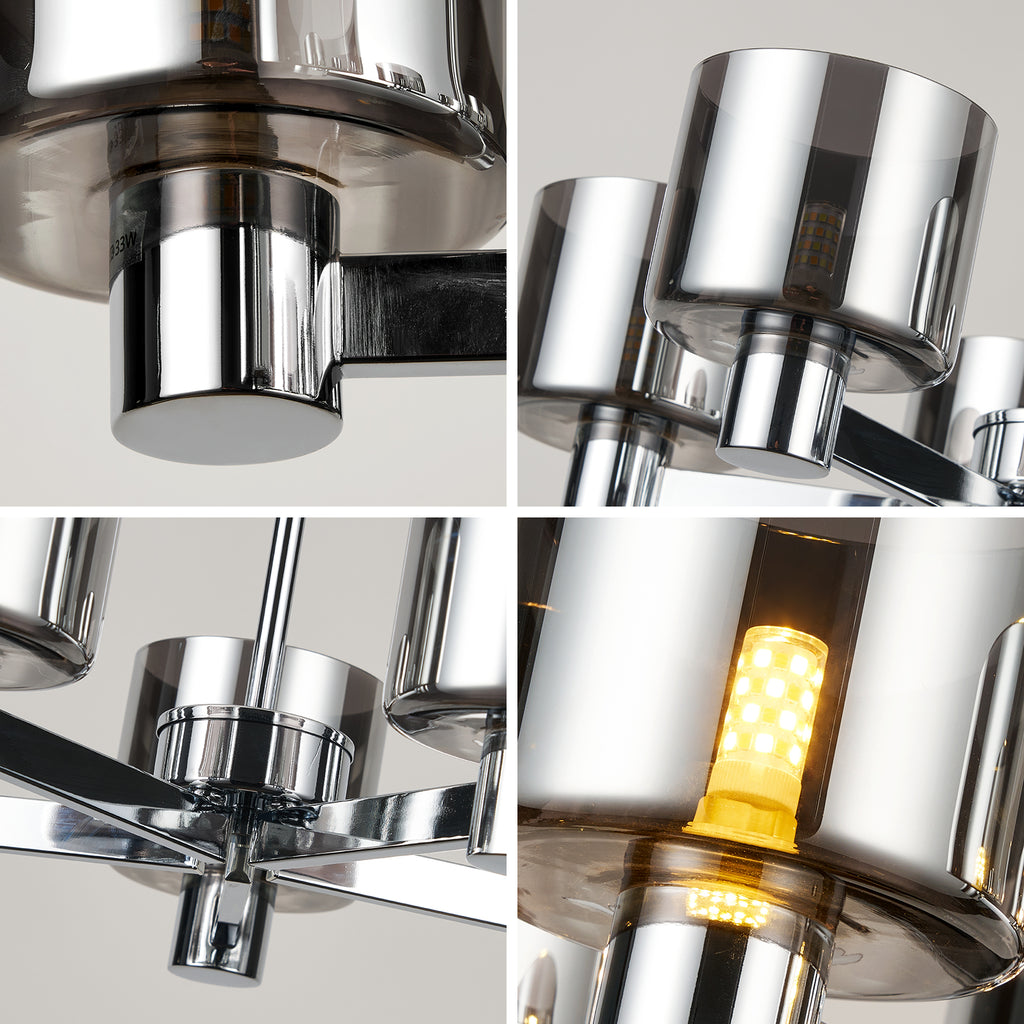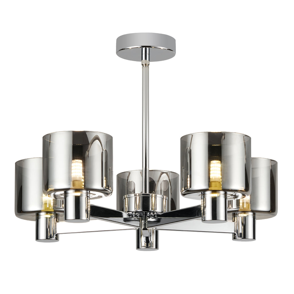 Modern 5 Lights Chandelier Ceiling Light, Chrome Semi Flush Ceiling Lamp with Smoked Glass Shades, 5xG9 Ceiling Lighting