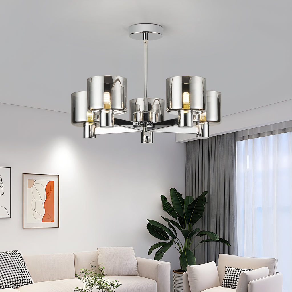 This modern chandelier features a sleek chrome finish and five Smoked glass shades, offering soft, ambient lighting. Its minimalist design blends elegance and functionality, making it ideal for dining rooms, living spaces, or entryways. The sturdy metal construction ensures durability while adding a contemporary touch to your home decor.